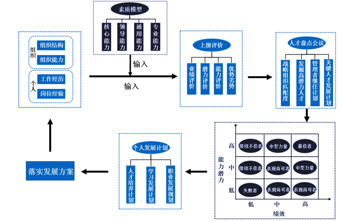 5.循環,定期舉行人才盤點,確定企業戰略的變化情況與人才培養的進度效果,不斷地進行人才標準的校正和淘汰,為組織打造一支高素質人才隊伍