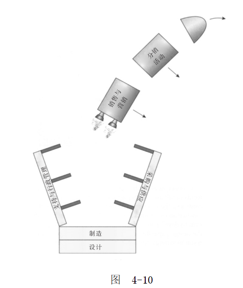 我們將 組織(zhi) 比(bi)喻 為 一種 發射 裝置, 它 能 開(kai)發、 制(zhi)造 其(qi) 產品 和 服(fu)務, 并將 產品 和服(fu) 務 分銷 至 目標 市場。 為了 實(shi)現 這個 目的, 組織(zhi) 需要 按照 邁 克 爾(er)· 波(bo)特( 1985) 所(suo)稱 的 價值 鏈 排列, 并 實(shi)施 一系列 業務功(gong)能。 正 如圖(tu) 4- 10 所(suo)示(shi),