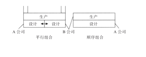 組(zu)織(zhi) 可(ke)以(yi)(yi) 通過 多種 方式 組(zu)合 其 能力(li)(li), 比如, 通過 成(cheng)立 合資企業, 與 合作(zuo) 伙伴 組(zu)建 其他(ta) 形式 的(de)(de) 聯(lian)盟, 簽署 許可(ke) 協議(yi), 建立 特許 經營(ying) 關(guan)系(xi), 簽訂 長(chang)期(qi) 合同(tong) 等。 通過 這些 方式 的(de)(de) 不同(tong) 組(zu)合, 組(zu)織(zhi) 能夠 建立 起(qi) 各種 網(wang)絡(luo)。 具(ju)體 而言, 組(zu)織(zhi) 可(ke)以(yi)(yi) 進行(xing) 平行(xing) 組(zu)合, 比如, 生產(chan) 電氣 產(chan)品 的(de)(de) 企業 和(he) 制造 機械 的(de)(de) 公(gong)司(si) 合并 研發(fa) 機構, 共同(tong) 生產(chan) 新(xin)的(de)(de) 電磁 產(chan)品。 或者, 組(zu)織(zhi) 也(ye)可(ke)以(yi)(yi) 按照 運營(ying) 的(de)(de) 順(shun)序 組(zu)合 其 能力(li)(li), 例(li)如, 一家 公(gong)司(si) 的(de)(de) 設計 部門(men) 與 另一 家 公(gong)司(si) 的(de)(de) 生產(chan) 部門(men) 合并( 見圖 4- 12)。 結果 產(chan)生了 協同(tong) 作(zuo)用, 即 2+ 2= 5 的(de)(de) 效應( 安(an) 索 夫, 1965)。